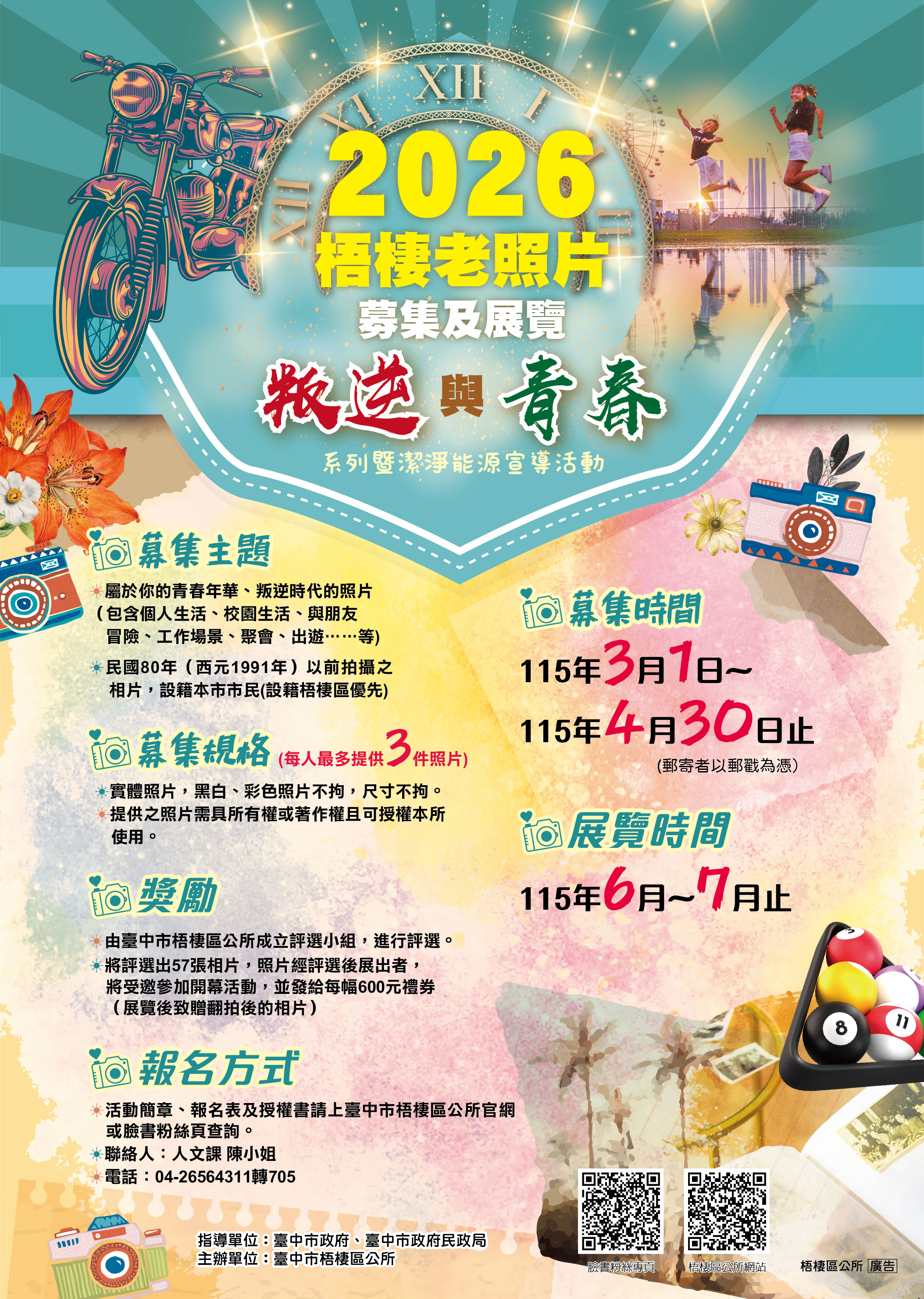 協助宣傳-臺中市梧棲區公所「2026梧棲老照片募集及展覽-叛逆與青春系列暨潔淨能源宣導活動」